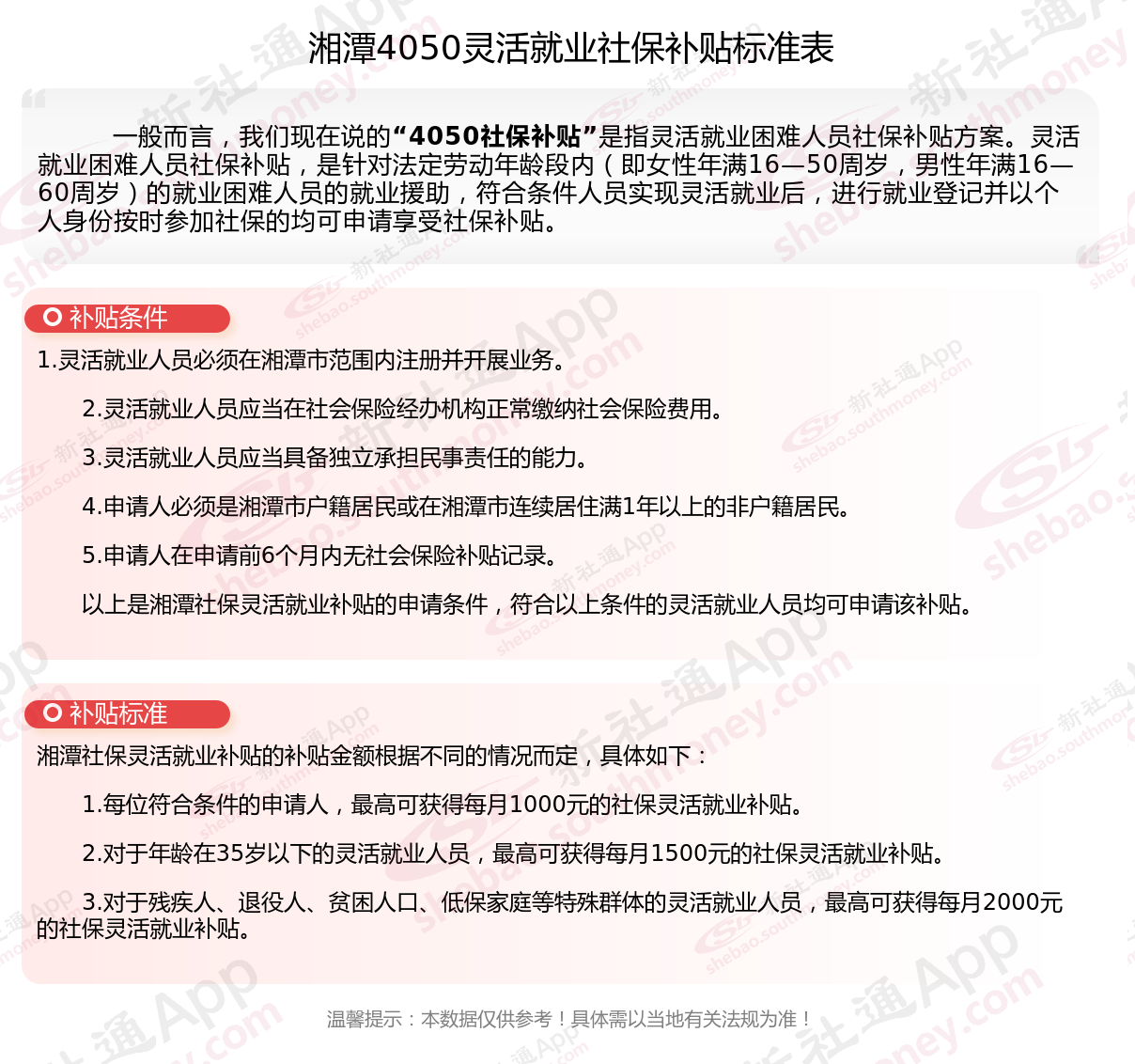 一、2023-2024年湘潭4050社保补贴标准及条件是多少?