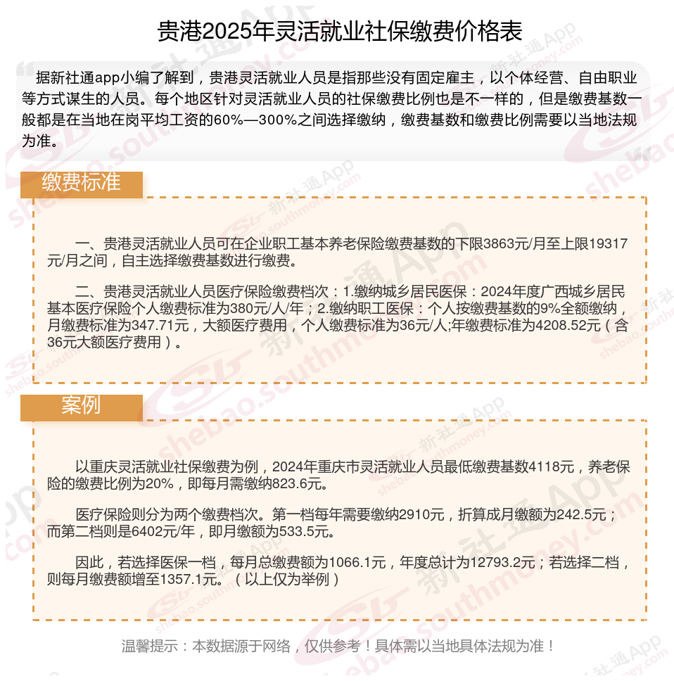 随着经济社会的不断发展,灵活就业群体不断地日益壮大,其社保缴费问题也愈发受到关注。那么2025年贵港灵活就业人员社保交多少钱,你了解2025年贵港灵活就业人员社保缴费基数及比例吗,接下来随新社通APP小编一起来看看。