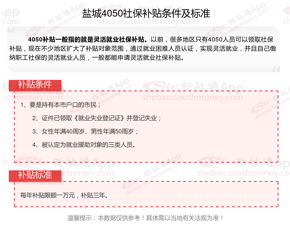 一、盐城4050社保补贴标准及条件2025年最新消息