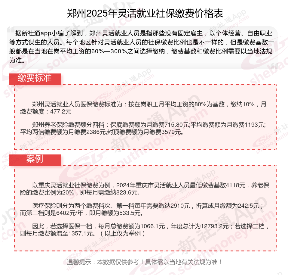 那么,打工人社保是多少钱一个月多少钱?根据新社通app-社保缴费查询工具提供的2025社保缴费标准详情数据: