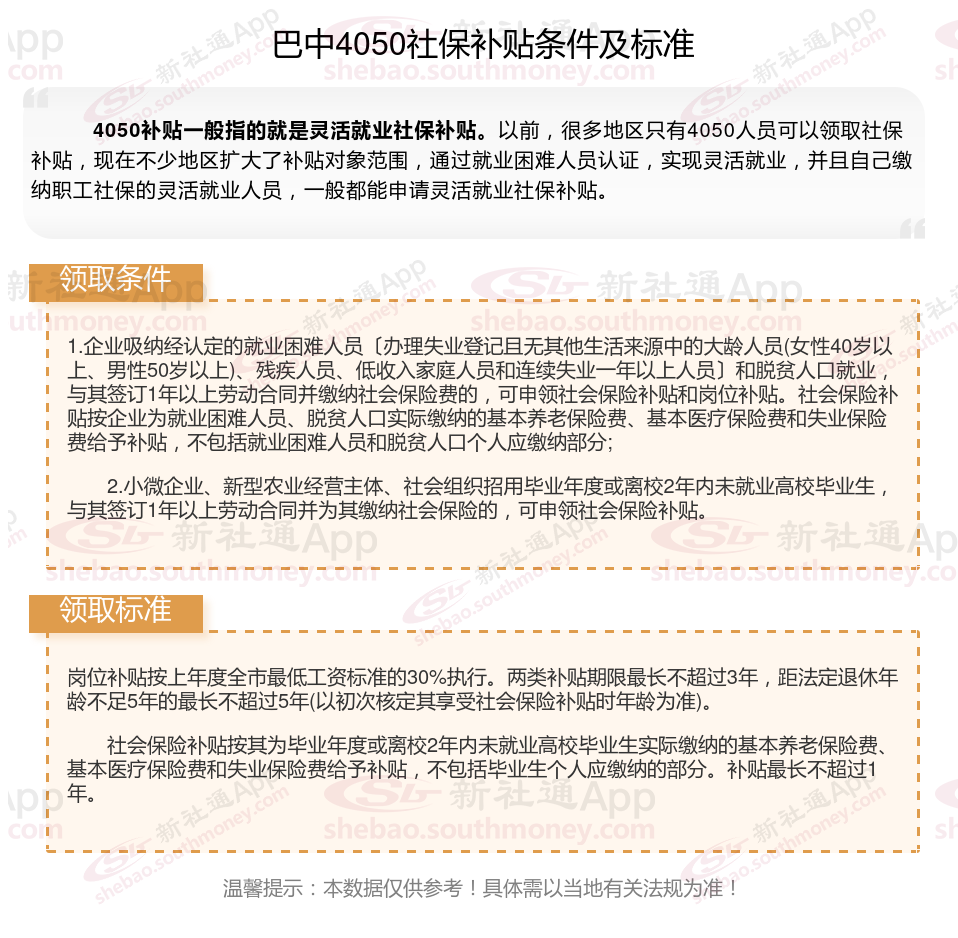 二、巴中4050社保补贴标准及条件4050社保补贴,最新如下