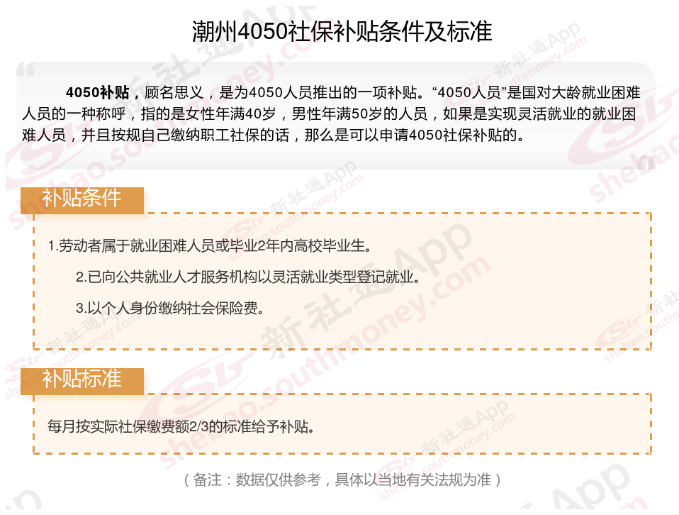 二、2025年潮州4050社保补贴标准是多少?条件是什么?