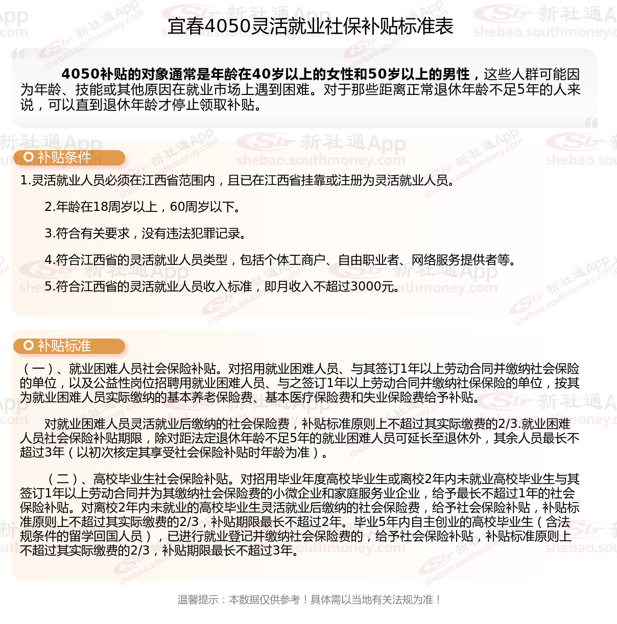 二、宜春4050社保补贴标准及条件2025年,最新如下