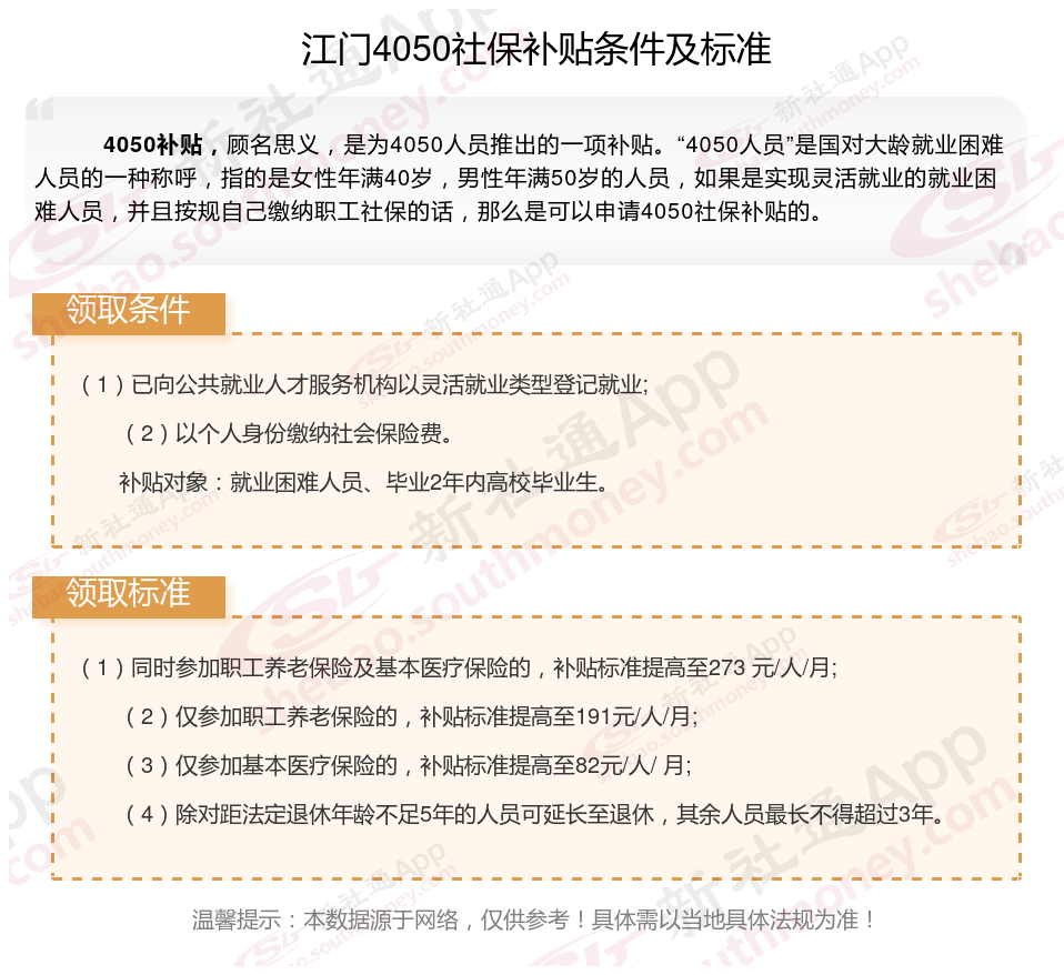 二、2025年江门4050社保补贴多少钱?4050社保补贴领取条件什么?
