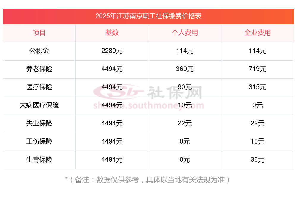 2025年江苏南京社保缴费多少钱?下表是2024-2025年江苏南京社保费用明细参考,新社通app-社保缴费查询工具提供的最新数据如下: