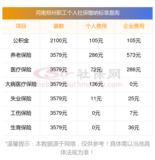 2025年河南郑州5险缴费标准是多少,2025年河南郑州社保缴费多少钱?下表是2025年河南郑州社保费用明细参考,新社通app-社保缴费查询工具提供的最新数据如下:
