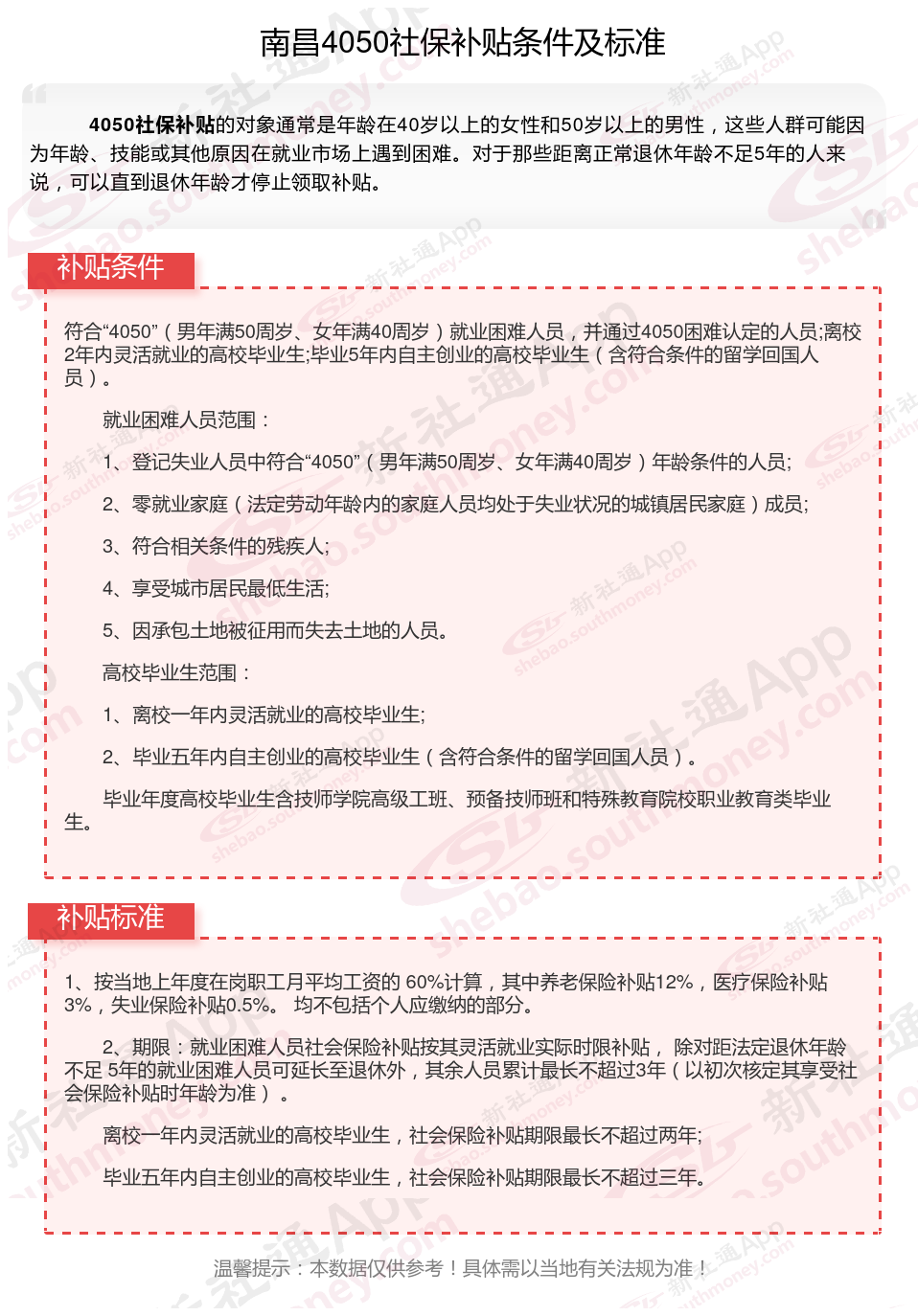 二、南昌4050社保补贴标准及条件(2025年最新)