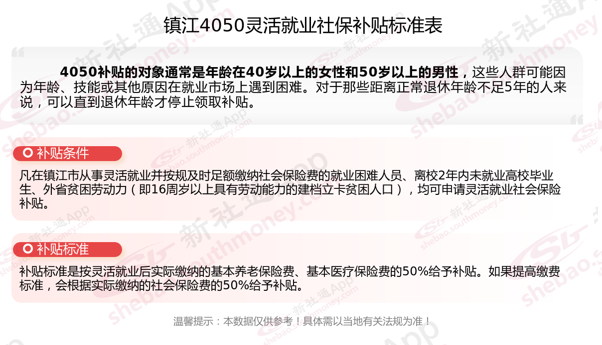 以上就是镇江4050灵活就业社保补贴的相关内容,欢迎关注新社通/下载新社通APP了解更多五险一金专业资讯。