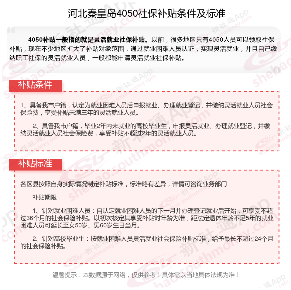 一、2025年河北秦皇岛灵活就业4050社保补贴标准最新是多少?