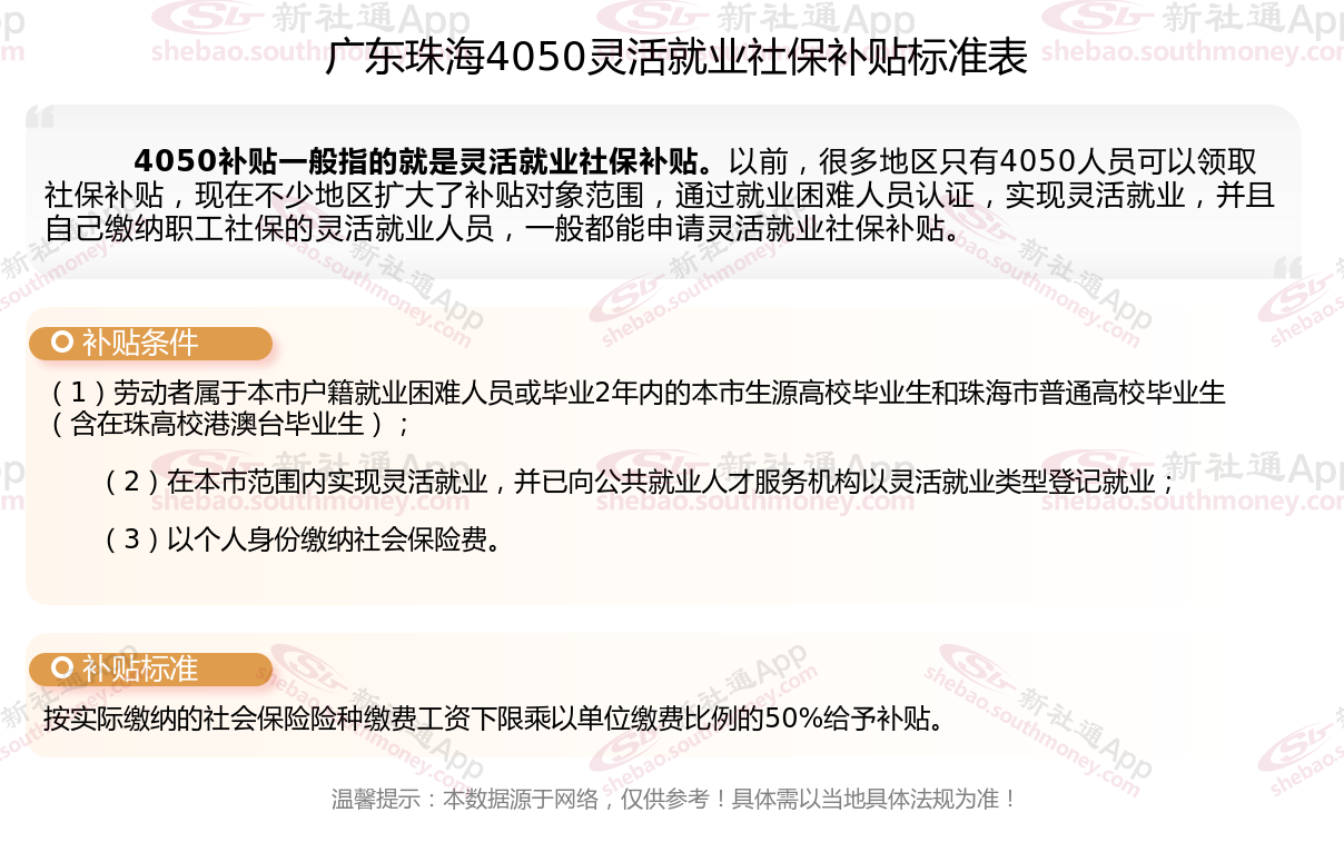 以上就是广东珠海4050灵活就业社保补贴的相关内容,欢迎关注新社通/下载新社通APP了解更多五险一金专业资讯。
