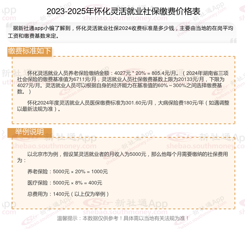 2025年怀化灵活就业人员社保需要交多少钱?灵活就业,作为一种非传统的就业方式,近年来蓬勃发展。为保护这部分人群的权益,国制定了相应的社保缴费法规。2024年,灵活就业社保缴费法规继续完善,涵盖了养老保险、医疗保险、失业保险等多个方面,旨在为灵活就业人员提供全面的社会保证。接下来随新社通APP小编一起来看看。