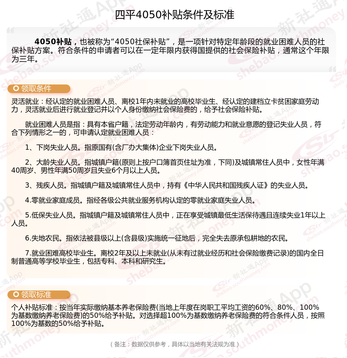一、2023-2024年四平4050社保补贴标准及条件是多少?