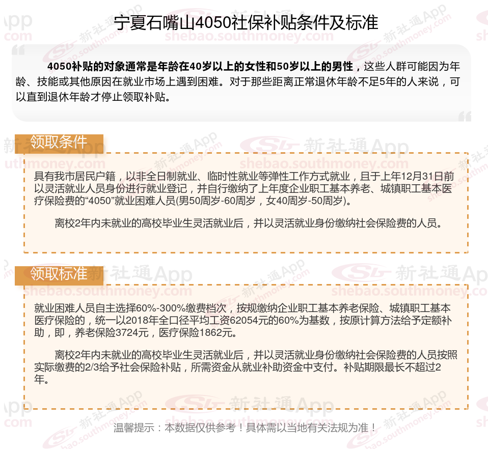 一、2025年宁夏石嘴山4050社保补贴标准是怎么样的?宁夏石嘴山4050一年可拿多少钱?