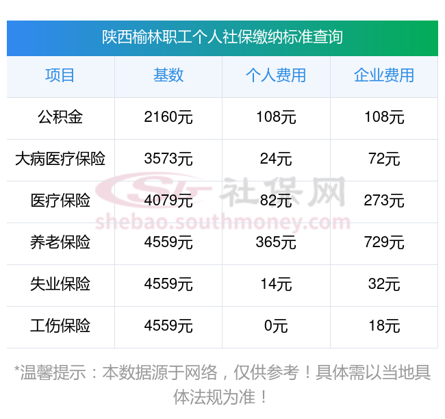 2025年陕西榆林社保缴费价格,2025年陕西榆林社保缴费多少钱?下表是2025年陕西榆林社保费用明细参考,新社通app-社保缴费查询工具提供的最新数据如下:
