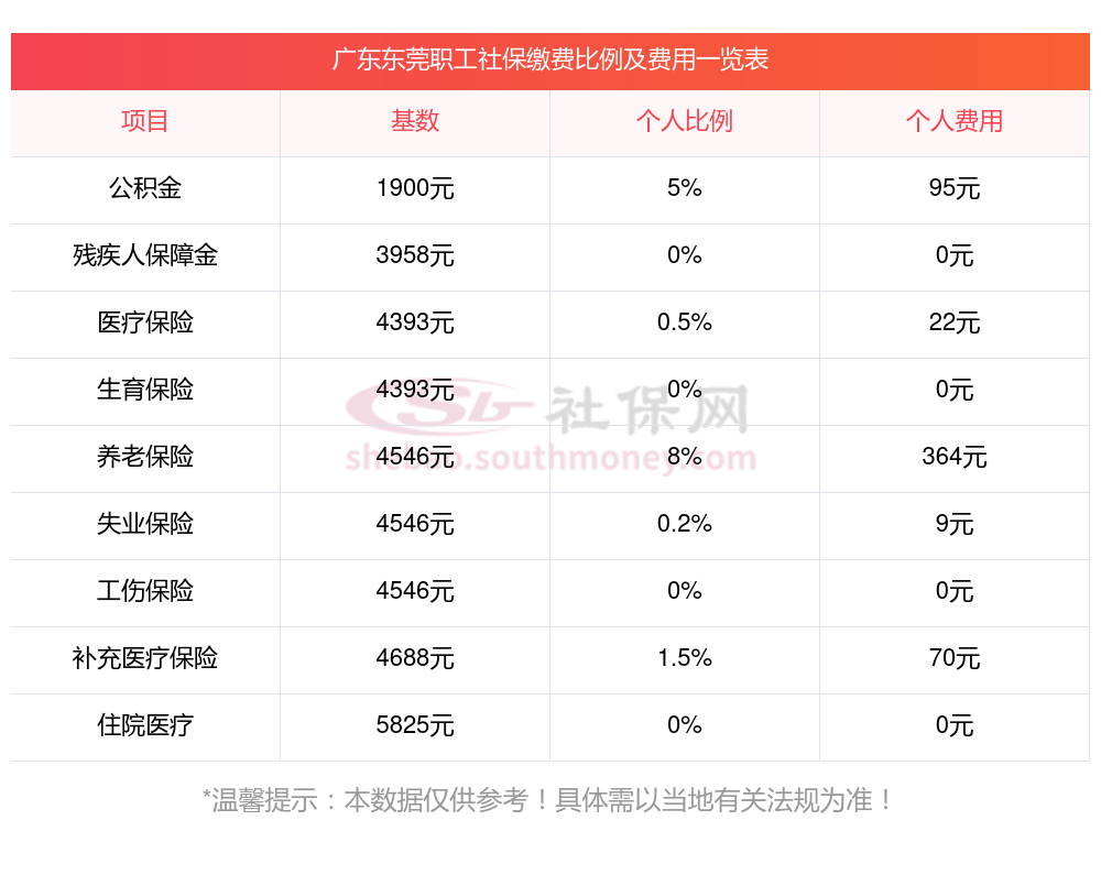 2025年广东东莞社保缴费多少钱?下表是2024-2025年广东东莞社保费用明细参考,新社通app-社保缴费查询工具提供的最新数据如下:
