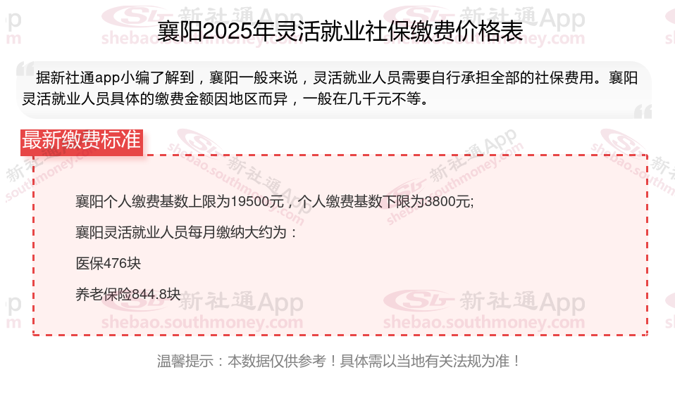 以上就是带来襄阳灵活就业社保缴费标准相关知识,内容供参考,希望对你有帮助,欢迎关注/下载新社通APP解锁更多社保专业资讯。