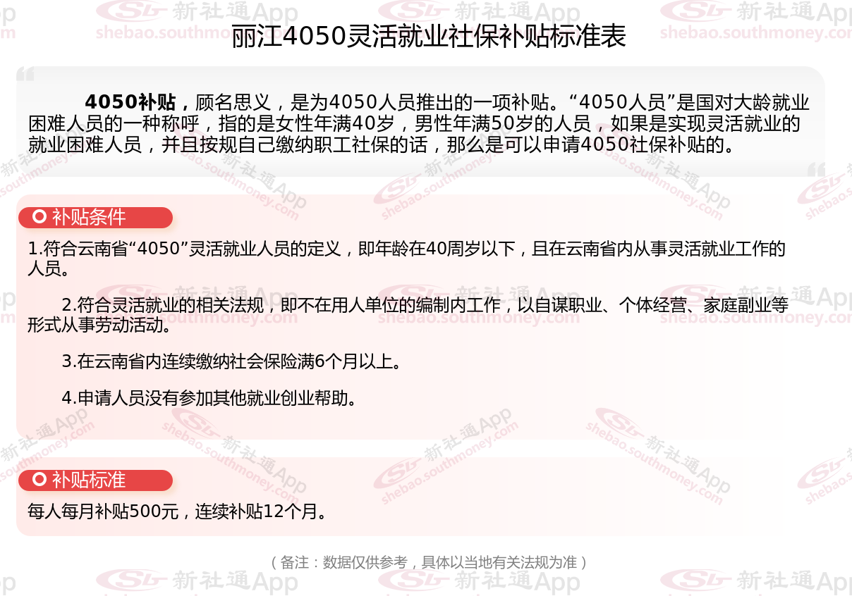 三、丽江灵活就业4050社保补贴标准及条件是什么