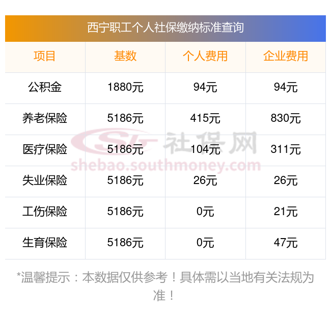 2025年西宁5险缴费标准是多少,2025年西宁社保缴费多少钱?下表是2025年西宁社保费用明细参考,新社通app-社保缴费查询工具提供的最新数据如下: