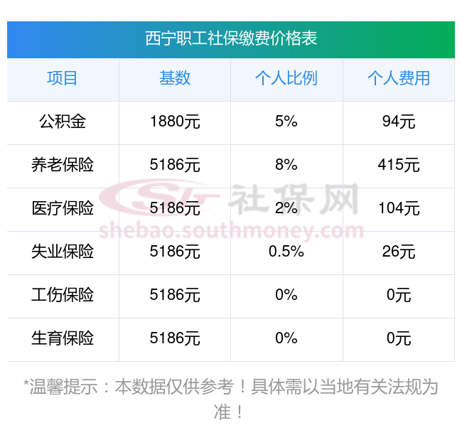 2025年西宁社保缴费标准是多少,农村社保要交多少年才不交 下表是2025年西宁社保费用明细参考,新社通app-社保缴费查询工具提供的最新数据如下: