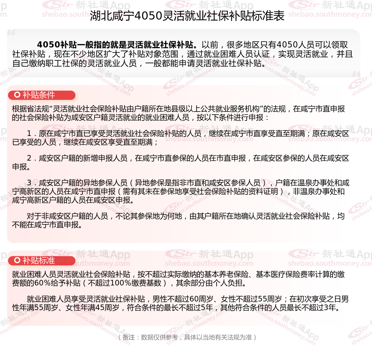 以上就是湖北咸宁4050灵活就业社保补贴的相关内容,欢迎关注新社通/下载新社通APP了解更多五险一金专业资讯。