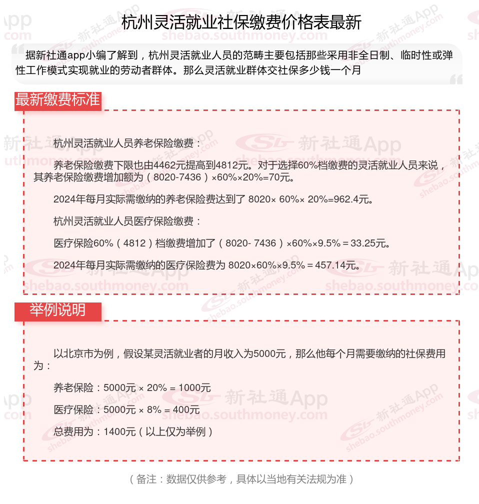 那么,灵活就业人员社保是多少钱一个月 杭州灵活社保交多少钱?根据新社通app-社保缴费查询工具提供的2025社保缴费标准详情数据: