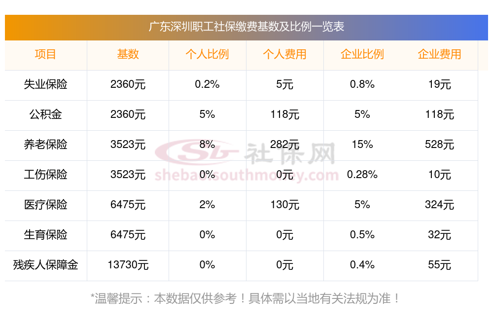 广东深圳社保怎么算公司和个人各交多少?