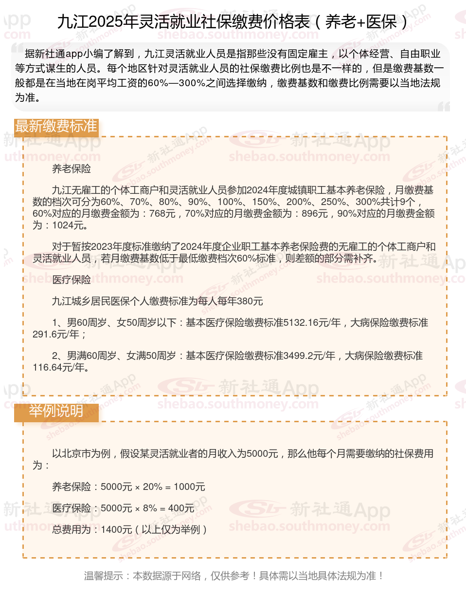 二、九江2024年灵活就业社保缴费基数、比例最新消息