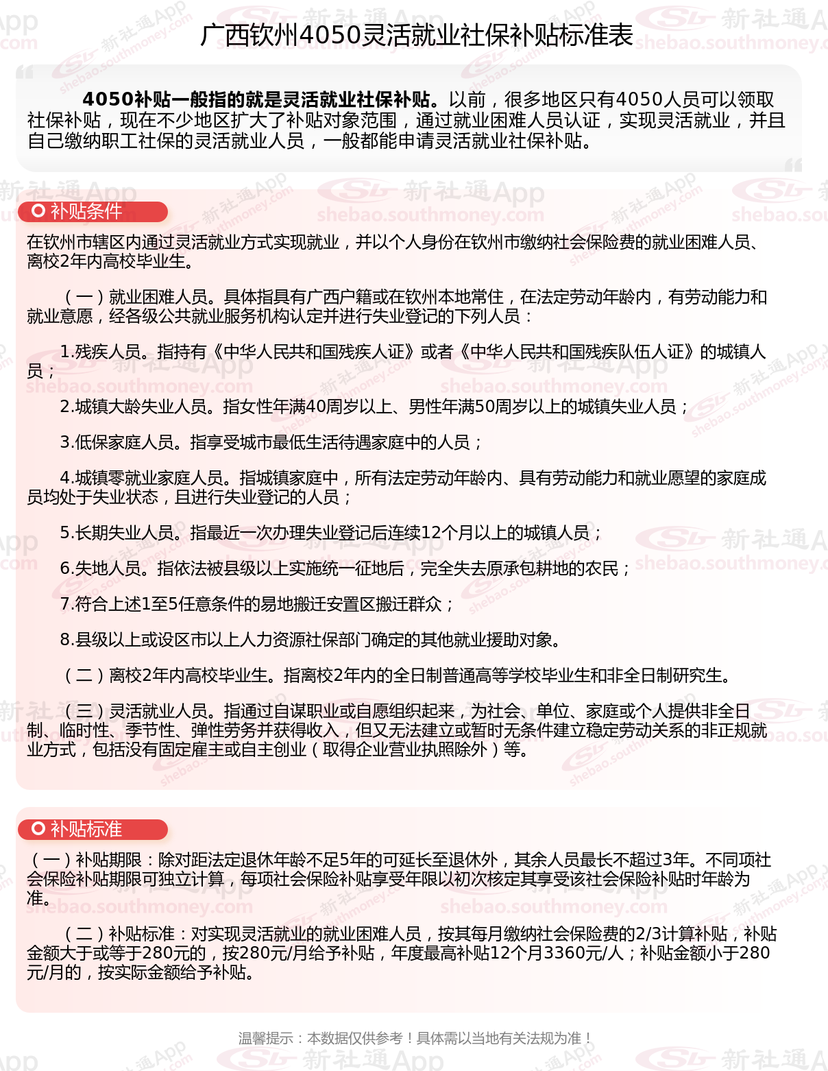 以上就是广西钦州4050灵活就业社保补贴的相关内容,欢迎关注新社通/下载新社通APP了解更多五险一金专业资讯。
