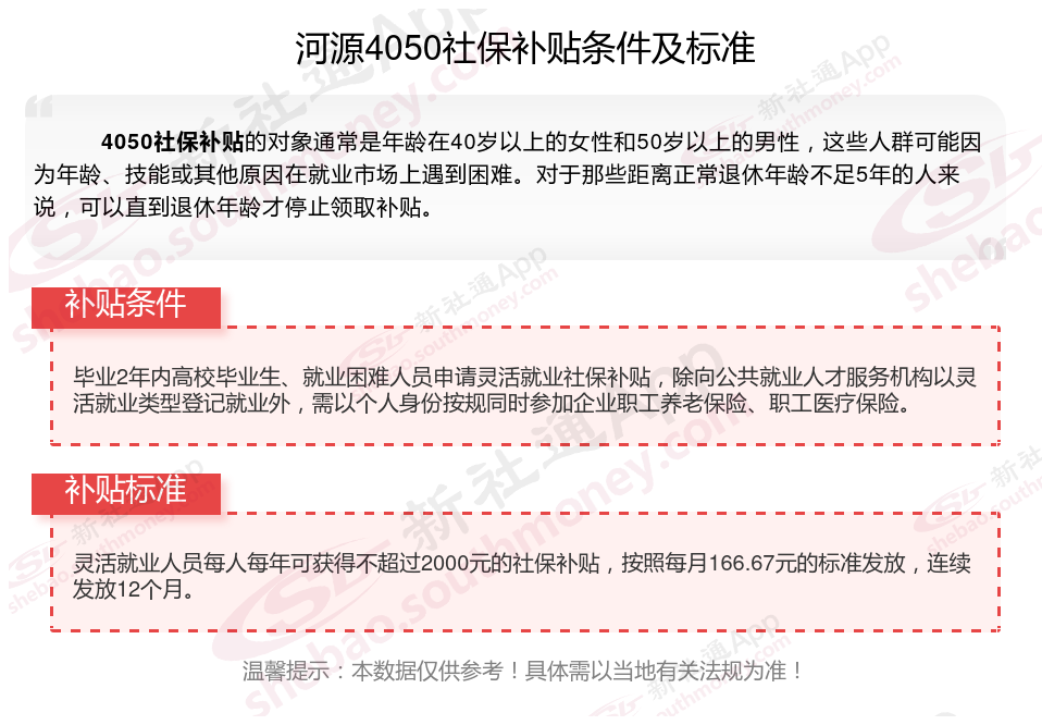 一、2025年河源4050社保补贴标准,最新领取条件来了