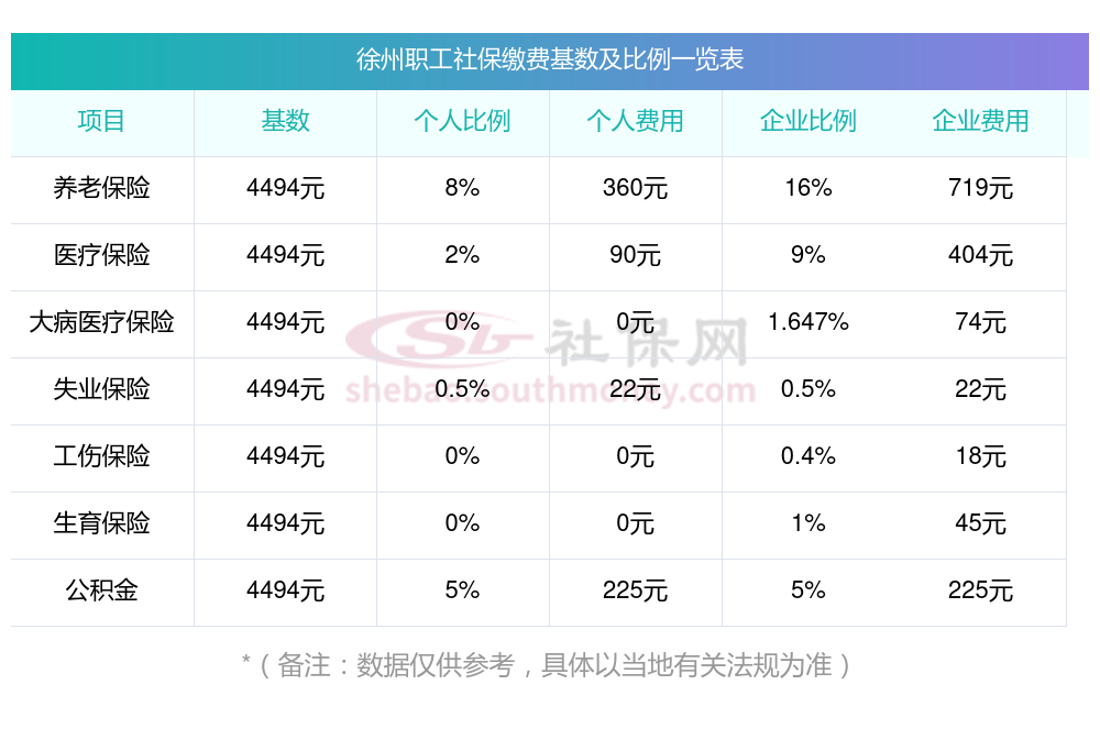 徐州缴费社保比例一览 社保公司和个人各交多少?下表是2024-2025年徐州社保费用明细参考,新社通app-社保缴费查询工具提供的最新数据如下:
