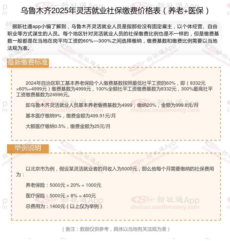 二、乌鲁木齐2025年灵活就业社保缴费基数及比例最新消息