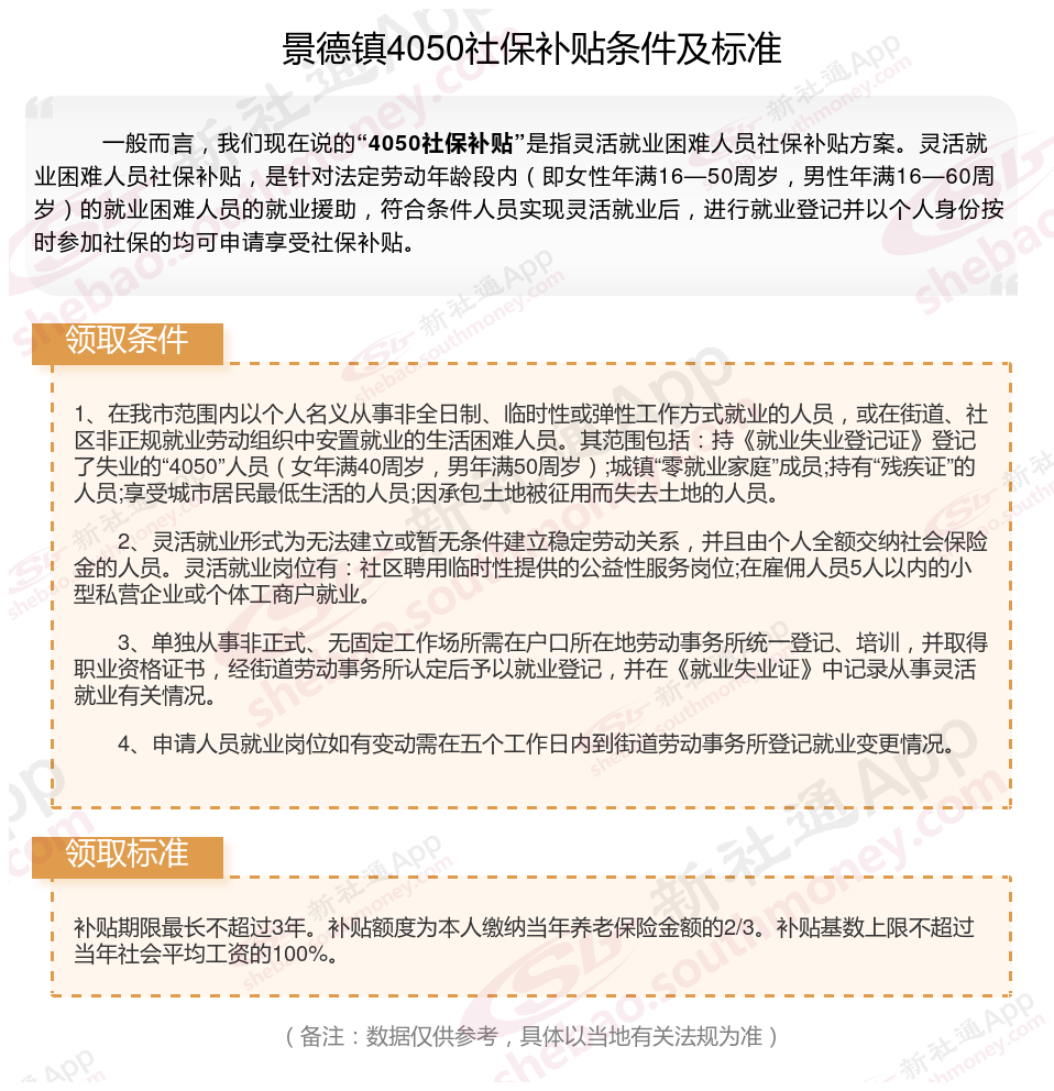 二、景德镇4050社保补贴标准及条件2025年,最新如下