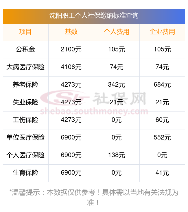 2025年沈阳社保缴费多少钱?下表是2023-2024年沈阳社保费用明细参考,新社通app-社保缴费查询工具提供的最新数据如下: