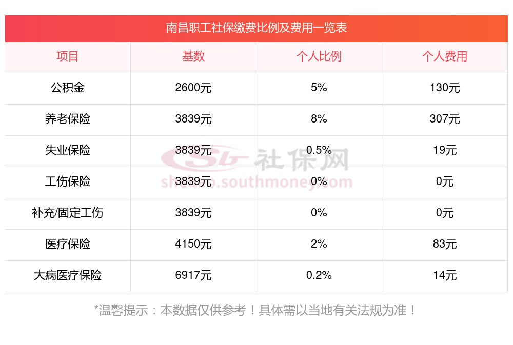 南昌缴费社保比例一览社保公司和个人各交多少?下表是2024-2025年南昌社保费用明细参考,新社通app-社保缴费查询工具提供的最新数据如下: