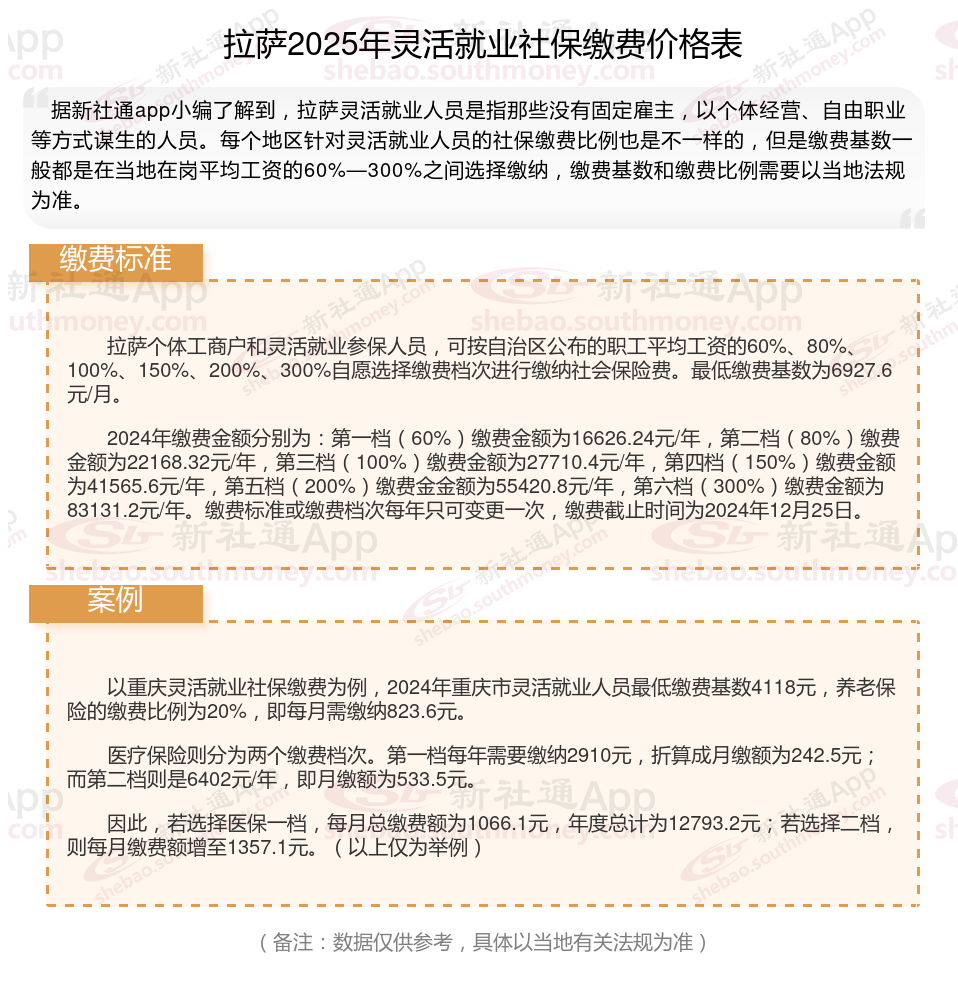 一、拉萨灵活就业人员社会保险缴费档次表,2025年最新个人社保养老保险缴费标准一览