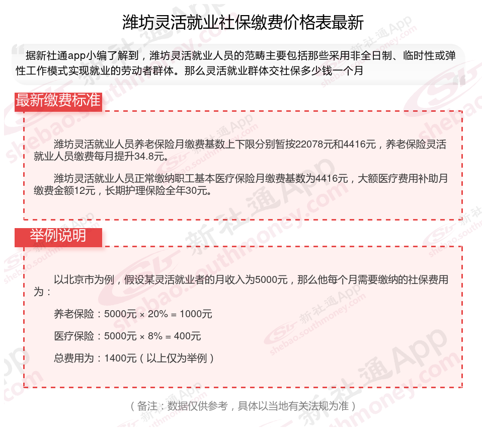 潍坊灵活就业社保缴费标准来了 灵活就业社保最低要交多少钱?根据新社通app-社保缴费查询工具提供的最新数据如下: