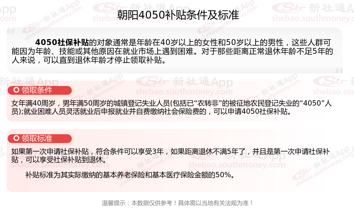 一、2023-2024年朝阳4050社保补贴标准及条件,最新如下
