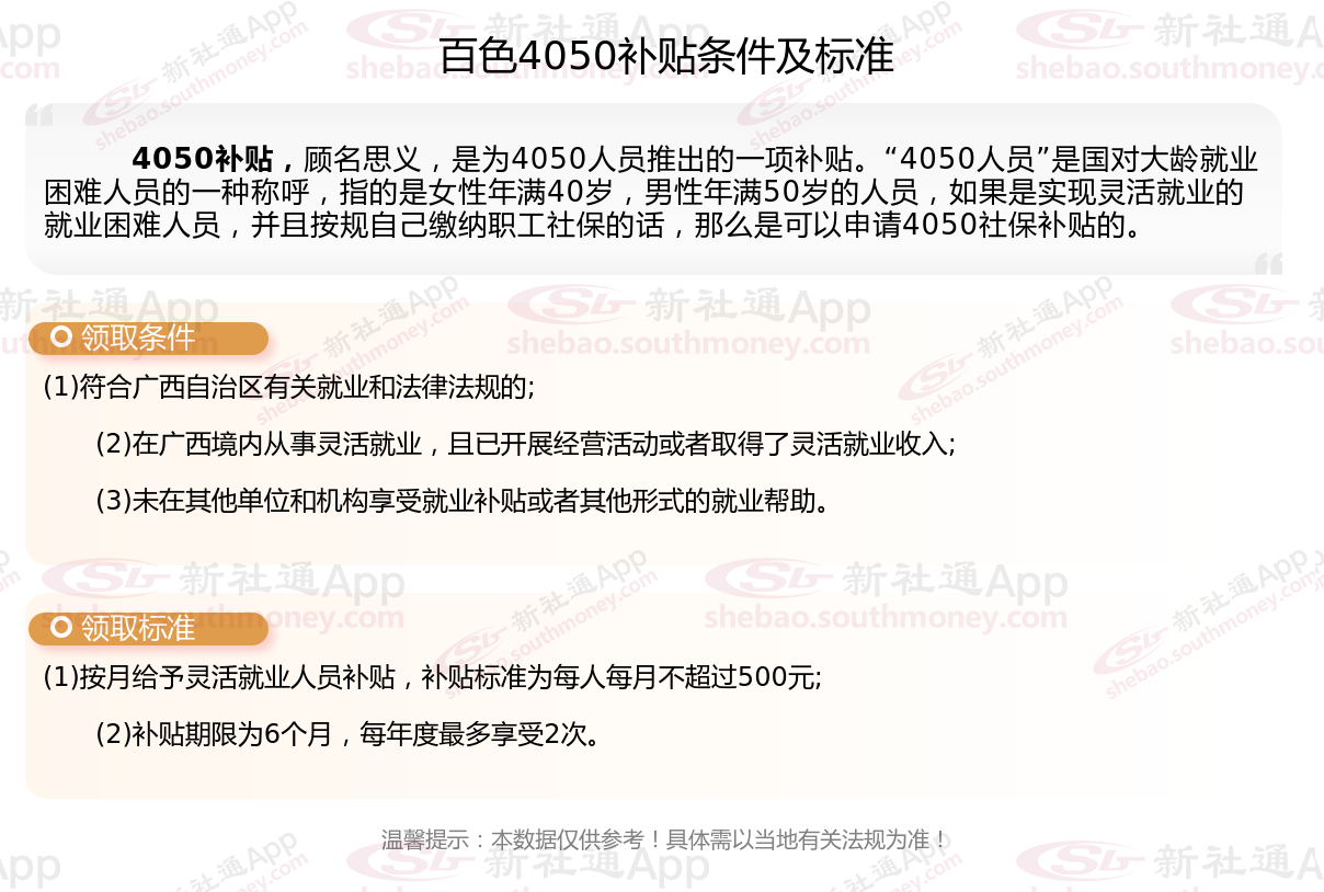 一、2023-2024年百色4050社保补贴标准及条件,最新如下