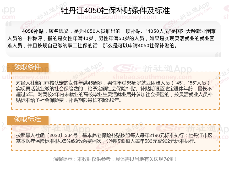 二、牡丹江4050社保补贴标准及条件(2025年最新)