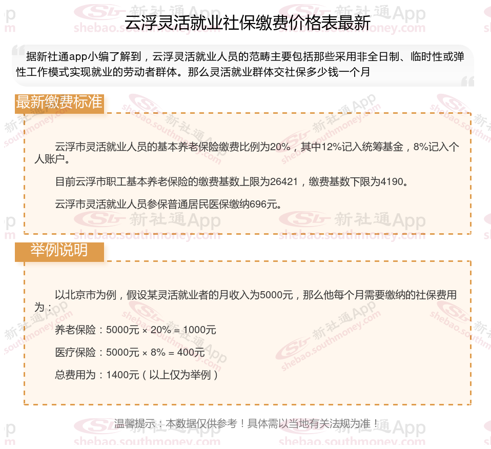 据新社通app数据显示,云浮灵活就业养老缴费基数明细如下: