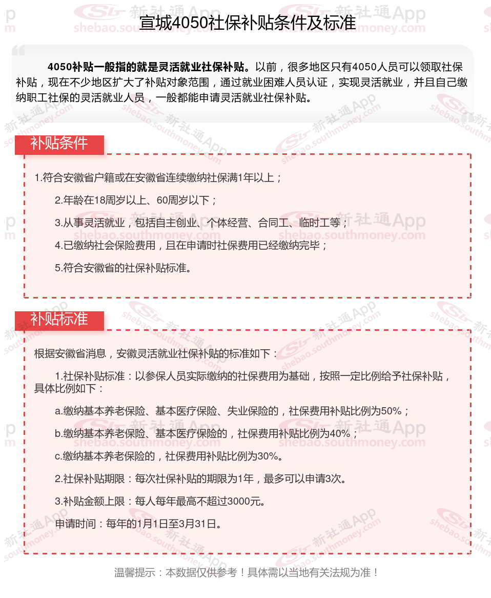 二、宣城4050社保补贴标准及条件(2025年最新)