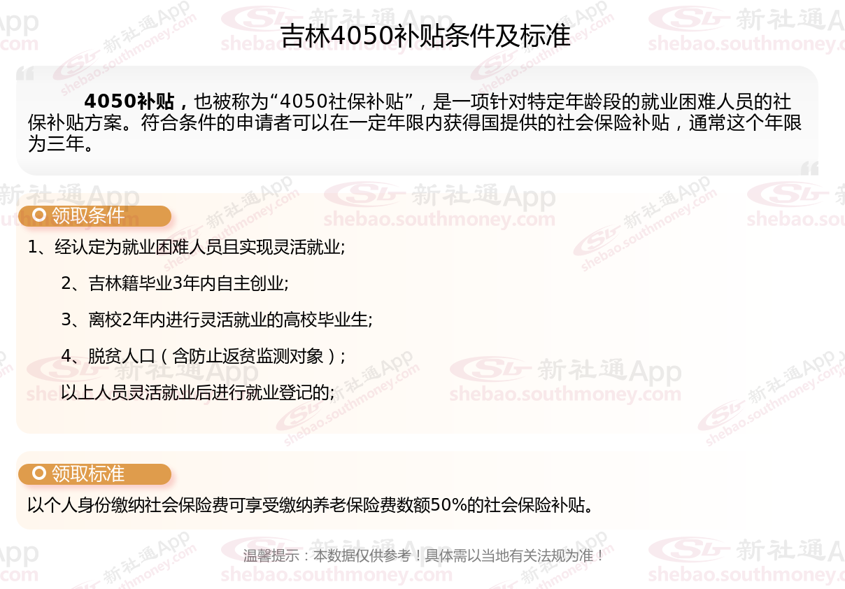 二、吉林4050社保补贴标准及条件2025年,最新如下