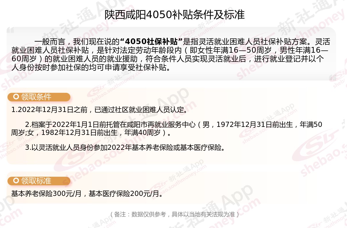二、2025年陕西咸阳4050社保补贴标准及条件,最新如下: