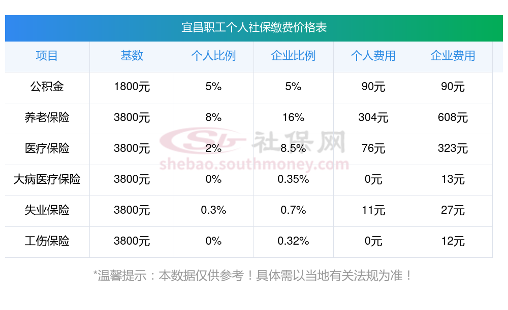 宜昌社保缴纳情况是怎样的?一起和新社APP一起来看看下面的明细表: