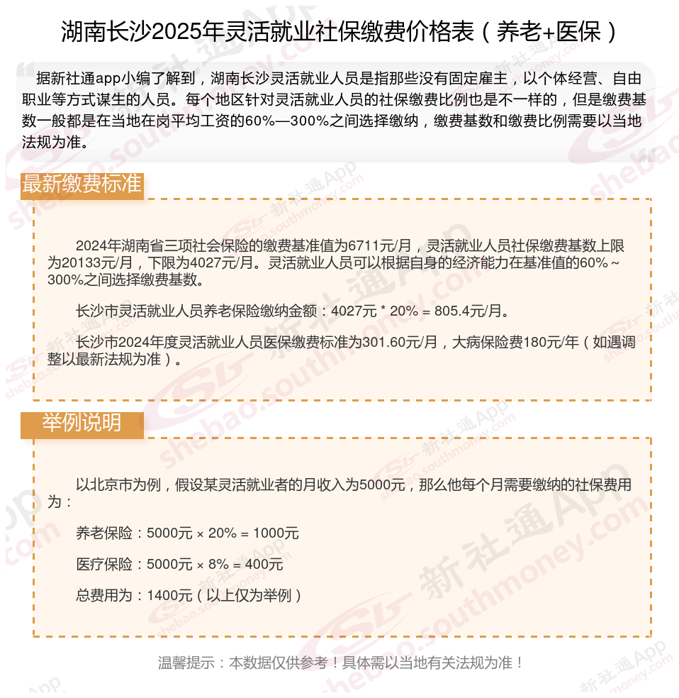 据新社通app数据显示,湖南长沙企业灵活就业养老保险的缴费基数为:4027元。