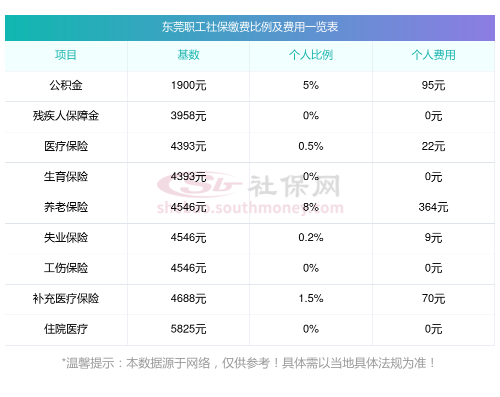 2025年东莞社保缴费价格,2025年东莞社保缴费多少钱?下表是2025年东莞社保费用明细参考,新社通app-社保缴费查询工具提供的最新数据如下: