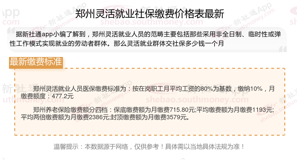 随着经济社会的不断发展,灵活就业群体不断地日益壮大,其社保缴费问题也愈发受到关注。那么2025年郑州灵活就业人员社保交多少钱,你了解2025年郑州灵活就业人员社保缴费基数及比例吗,接下来随新社通APP小编一起来看看。