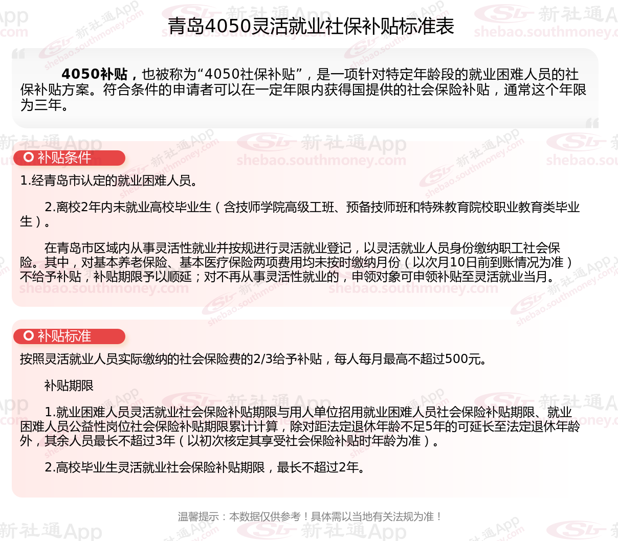 二、青岛4050社保补贴标准及条件2025年,最新如下