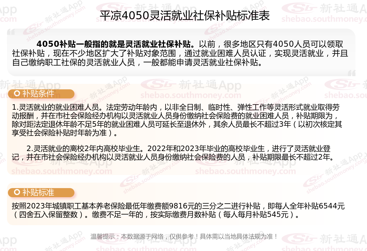 以上就是平凉4050灵活就业社保补贴的相关内容,欢迎关注新社通/下载新社通APP了解更多五险一金专业资讯。