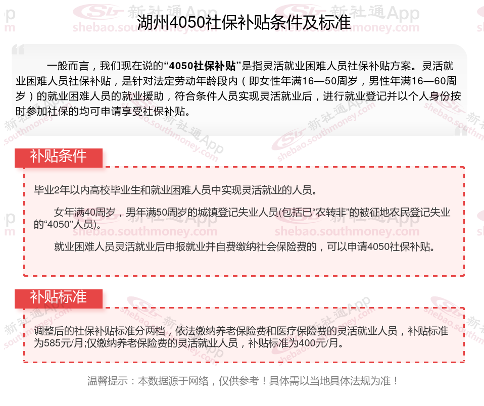 以上就是湖州4050灵活就业社保补贴的相关内容,欢迎关注新社通/下载新社通APP了解更多五险一金专业资讯。